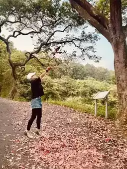 During autumn and winter, the leaves of the Ceylon olive trees turn red, painting the trail with a romantic and warm ambiance, as if walking through an avenue of autumn foliage.