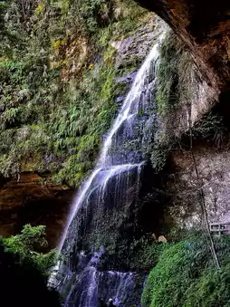 The waterfall itself is uniquely beautiful. It cascades behind a massive rock overhang, creating a natural corridor where visitors can walk directly beneath the falls. Standing there, surrounded by mist and echoing water, feels magical — like stepping into a hidden world sculpted by time. The view from behind the curtain of water is breathtaking, offering a perspective that’s both rare and unforgettable.