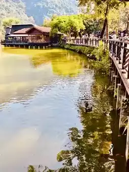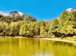 A lakeside trail surrounds the pond, lined with maple trees, camphor trees, bald cypresses, and Hong Kong orchid trees🌳. During autumn and winter, the vibrant colors create a picturesque scene of reflections between the lake and the mountains.