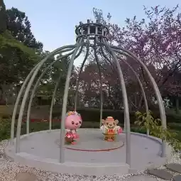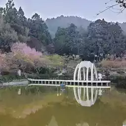 I believe many people who have been to Cingjing know that [Cingjing Little Swiss Garden] has been open for a long time. It is currently run by the 7-11 team. There are many OPEN family devices placed in the garden. It has the same pool but with a little less water. There are also fewer bird species. The biggest highlight at present is the cherry blossoms decorated with fans, which is very charming.