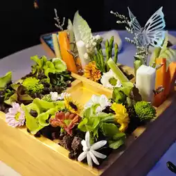 Morning Light/Salad Farm, what’s special is that once water is applied, the lettuce will slowly grow out of the soil. All the visible lettuce, decorative butterflies, and even the “soil” can be eaten.
