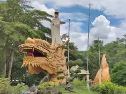 Wanfo Temple, located in Nansi District of Tainan City near Zengwen Reservoir, is often referred to as Taiwan's Angkor Wat. Built in 1987, the temple features a pagoda-style architecture with a grand and magnificent appearance. Another highlight of the temple is the "Xiao Putuo Mountain Zen Park," which has earned the nickname of Taiwan's Angkor Wat. The park boasts stone cave Buddha statues, weathered ancient city ruins, stone forest landscapes, stone wall carvings, and a unique natural beauty of stalactite caves. Visitors wishing to explore the park must book their visit online in advance; otherwise, they may find the gates closed. However, due to recent earthquakes in the Zixi area, some large rocks in the park have shifted, and for safety reasons, the park is temporarily closed.