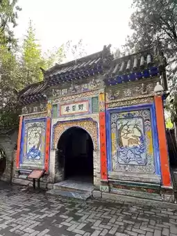 Architectural art: The buildings in the temple are built along the ridge, with stone arches, Xianren Bridge, mountain gates, the Great Worship Hall, thatched cottages, Ningyuan Tower, etc., all located on the central axis, with stele corridors and ancient cypress pavilions on both sides, forming two quadrangles.