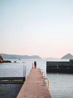 The first and second photos are taken when I realized that the main focus would be on the morning sun, since Honmura Port is located in the east, and I could see the sunset going down into the mountains, so I dashed over there and took this photo