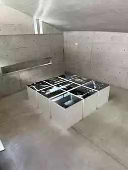 Inside the museum, Tadao Ando's architectural concepts and models of the Naoshima project are on display, allowing you to experience the charm of Ando's architecture, which manipulates light and shadow.