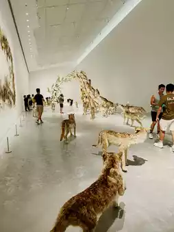 The Naoshima New Art Museum, which opened in May 2025, includes an impressive exhibition hall filled with wolf-themed artworks. The architecture, primarily featuring exposed concrete, is aesthetically stunning.