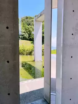 Located on Naoshima, the Hiroshi Sugimoto Time Corridor Exhibition Hall primarily showcases the works of photographer Hiroshi Sugimoto, including themes such as "Seascapes," "Architecture," and "Optics." The exhibition space extends into the lounge and outdoor areas, aiming to create a dialogue between the environment and the artworks. The exhibition hall itself was designed by Tadao Ando and was established in 2022 as a permanent exhibition space. It is incredibly beautiful, with the building's interior incorporating natural light that changes throughout the day, casting varying shadows and highlights on the artworks.