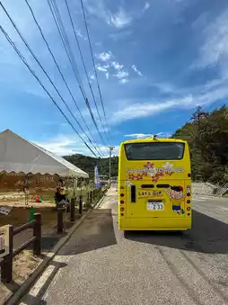 Getting around is easy with a rental bicycle, a municipal bus, or a Benesse bus. The red pumpkins and yellow pumpkins by the sea, visible from the port, are must-see photo spots. 📸🎨