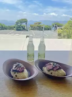 If the weather is nice, it's nice to eat outside while looking at the blue sky and the sea♩