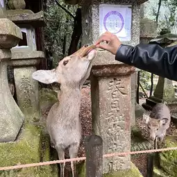 Bowing deer in Nara is a popular tourist attraction in Japan where visitors can interact with over 1,000 free-roaming Sika deer. These friendly deer are known for their ability to bow in exchange for treats, which can be purchased from vendors throughout the park. The tradition of deer in Nara dates back over a thousand years and is considered a symbol of the city.