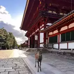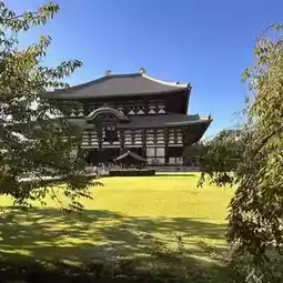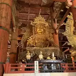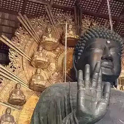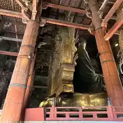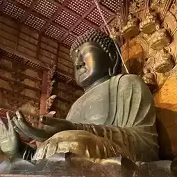 The Todai-ji temple near Nara park contains the worlds biggest bronze Buddha statue in an enormous wooden temple built over 300 years ago.