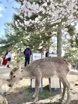 🌸 The time we went was the cherry blossom season, so we were able to take many pictures of the deer and the beautiful cherry blossoms. If anyone wants to come during the full bloom, we recommend coming from March to early April.