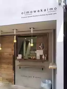 Oimo Waka Imo (おいもわかいも) is a small cafe located on Higashimuki Shopping Street. This shop sells drinks and various sweet potato-related menus, such as baked sweet potato, sweet potato soft-serve ice cream, sweet potato Mont Blanc, sweet potato tempura, sweet potato cake, crispy sweet potato sticks.