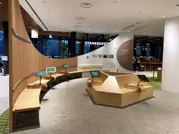 There are also places for tourists to sit and rest. There are restaurants, souvenir shops, and a famous coffee shop called Starbuck's.