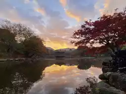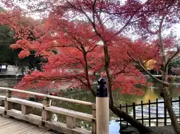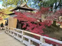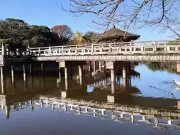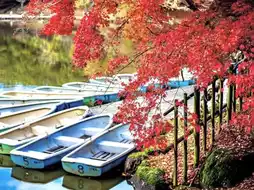 Around the pavilion, there are boats to row in the pond. And when autumn comes, the maple trees will turn red. When looking from inside the pavilion, it looks like everything is dyed with red leaves. It is a very beautiful image. Especially in the evening when the sun sets, Ukimido pavilion and the evening sunlight are very suitable for taking pictures.