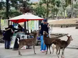 Nara Park, Nara Prefecture, Japan is a large public park and one of the oldest public parks in Japan, built in 1880. In addition to being a place for city dwellers to relax, the park is also home to a large number of deer. Nara has almost 1,200 deer, which has made deer a symbol of Nara. The deer in Nara live freely, walking, eating, and sleeping in the park. They are not afraid of people. There are shops selling sembei or Japanese rice crackers at various points. We can buy and feed them to the deer and take pictures with them.