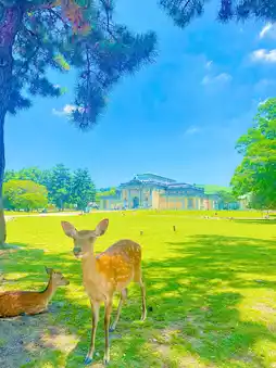 After leaving Todaiji Temple, we walked to Wakakusa Mountain behind. The scenery here is beautiful and the grass is green, but surprisingly there are not many tourists. We took a leisurely walk here, and from time to time there were deer passing by or eating grass. We also sat in a nearby pavilion, feeling the breath of nature and the charm of the ancient capital of Nara😌.