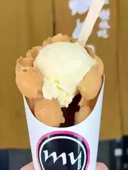 Recommended menu: Original and chocolate flavored waffles. You can add ice cream and toppings. If you order a drink, you will get a stylish mesh bag as a photo prop.
