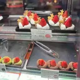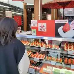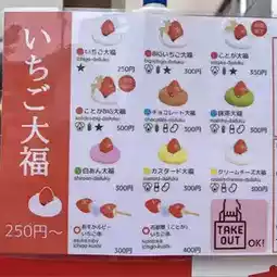 This is a dessert cafe located in the Higashimuki Shopping Street area of Nara, Japan. It is famous for its daifuku with many flavors. The center is filled with a large strawberry and decorated with a deer-shaped biscuit, which is a symbol of Nara. There are also ice cream and shaved ice menus. You can buy it to take home or eat it at the shop.