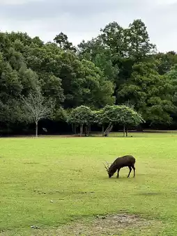 Nara Park is a stunning expanse of greenery that boasts beautiful grasslands perfect for a leisurely stroll or a relaxing picnic. The park covers over 1,200 acres and features rolling hills, well-maintained lawns, and vibrant flora that change with the seasons.