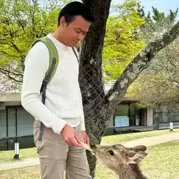 My trip to Nara Park was so much fun! As soon as I arrived, I was greeted by friendly deer roaming around everywhere. These deer are super cute and not shy at all—they even bow to you for a treat! I bought some special deer crackers and had a blast feeding them. Some deer were polite, but others were playful and tried to follow me around for more snacks.