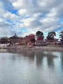 The scenery of Kofuku-ji Temple reflected on the water surface along with the surrounding willows is very beautiful
