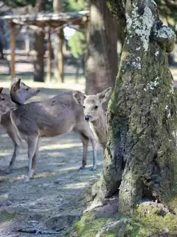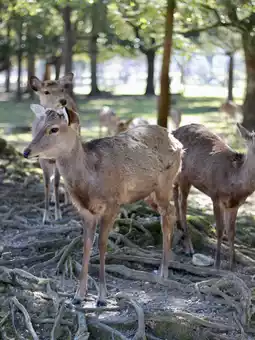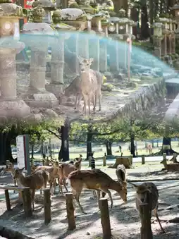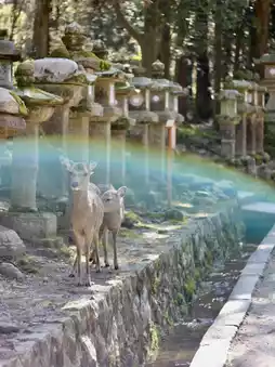 From time to time, deer appear from between the stone markers, curiously peeking out or gracefully roaming in small herds. When the sunlight pierces through the dense foliage and gently illuminates the deer and stone monuments, the interplay of light and shadow creates an enchanting scene that makes you instantly fall in love with this place.