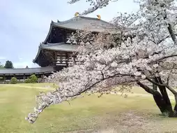 And during the cherry blossom season, from March to early April of every year, in front of the temple, you will see the pink blossoms of cherry blossoms planted in front. When taking pictures of the cherry trees in full bloom with Todaiji Temple as the background, you will get beautiful pictures.