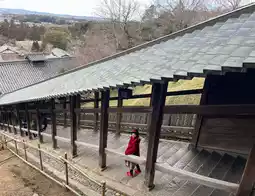 Todaiji Temple covers a vast area, and there are places to visit such as Nigatsu-do, Sangatsu-do, bell tower, and Hokke-do in the temple. Climbing up to the Nigatsudo platform, you can overlook the Great Buddha Hall and the city of Nara.