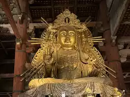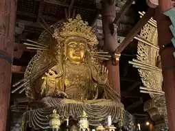 Inside the Great Buddha Hall, there is a 15-meter-tall giant statue of Vairocana Buddha. The Buddha's belly and part of the lotus throne are original from the Nara period, while the other parts have been gradually restored over the ages.