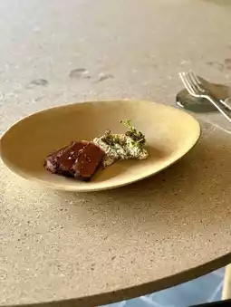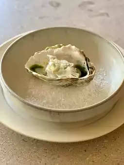 The rich flavor of the rock oysters and the creamy texture of the cauliflower are in harmony, accented by the refreshing aroma of the herb celery. The aroma of the sea and the freshness of the greenery create an exquisite balance, giving you a taste that feels deep with every bite.