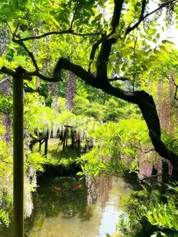 There’s always something blooming depending on the season. Wisteria, irises, plum blossoms and the layout is really easy to stroll through. You can take your time, stop at little benches, and just enjoy the peace and quiet. It’s super green and feels like a little forest escape, even though you’re not far from town. Definitely not a high-energy place, but that’s the point. If you want to slow down and chill for a bit, this garden totally hits the spot.