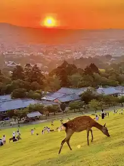 Watching the sunset in Nara is a moment that feels like stepping into a dream. As the sky glows with shades of orange and pink, gentle deer wander freely across Nara Park, creating a scene both peaceful and timeless. The blend of ancient temples, quiet nature, and golden light makes this experience one of the most unforgettable in Japan. Truly, life feels complete when you’ve witnessed a sunset here.