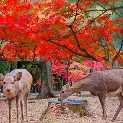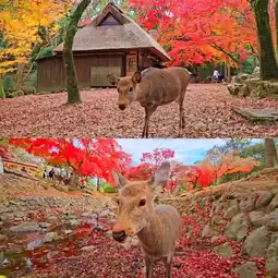 Autumn trips to Kyoto (Nara Park) are perfect for families, with crimson maple leaves adorning ancient pagodas and shadowy deer. The air is refreshingly cool and comfortable as the leaves turn crimson in mid-to-late November. Take the JR Nara Line from Kyoto Station to Nara Station in about 45 minutes, and the park entrance is a 10-minute walk away. The park's spacious, flat grounds are perfect for strollers, and children will love feeding and interacting with the gentle sika deer up close. We especially recommend the maple trail next to Todai-ji Temple, where the crimson leaves shimmer like candlelight, adding to the tranquility of the ancient temple. Visit Mount Wakakusa for a panoramic view from the summit, or head to Naramachi for matcha tea and persimmon daifuku. Avoid weekend crowds and set off early in the morning. Bring light snacks and a camera to capture the heartwarming moments of your family and the deer. Experience the charm of autumn in this ancient capital on a day trip that will leave you with unforgettable memories. Plan a family trip to see the fall foliage!