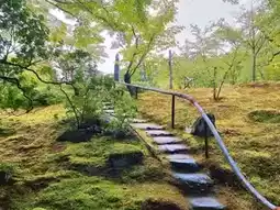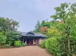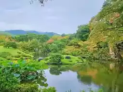 Isuien is divided into two sections, the 'Front Garden' and the 'Rear Garden,' which were created during the Edo and Meiji periods, respectively. Each section showcases the distinct garden styles of its era. This strolling garden, centered around a pond, is particularly notable for its use of the 'shakkei' (borrowed scenery) technique, harmonizing with the surrounding natural landscape.
