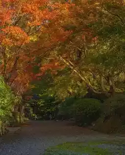 👉 The maple leaf tunnel in front of the mountain gate is unreal in beauty!