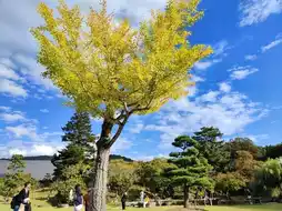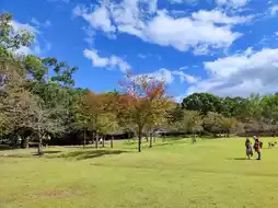 There are many large green grass in the park, which coincides with the autumn. There are many local Japanese elementary school students' autumn outing group activities, which are very cute like a flock of little ducks😊