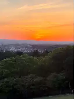 The sun is a huge, round orange ball.