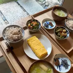 The chahan cooked with roasted green tea is so delicious!! I also love miso soup with lots of vegetables, so I'm happy ☺️