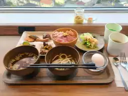 The peaceful surroundings ensure a good night’s sleep. The breakfast is abundant, featuring unlimited servings of two types of tuna and mentaiko. Both Narita and Haneda airports are about 45 minutes away.