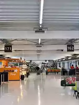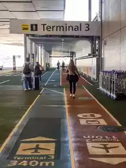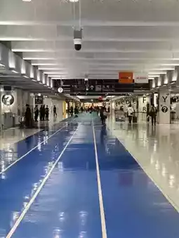After passing through baggage inspection, walk through the terminal for a few minutes to reach the main boarding gate.