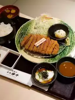 Choose the hind leg meat of black-haired wagyu beef, fry it until medium-rare😌, the outer layer is crispy, and the inner layer is tender and not juicy😗. It is also paired with seven different seasonings, special soup soy sauce and wasabi sauce. This is the way to eat it in the Katsugyu school. 😅But the taste is ordinary, not amazing, and it costs nearly NT$500 to eat this portion of fried wagyu beef🙃, which is low cost-effective and of average quality. ☹️Not recommended!