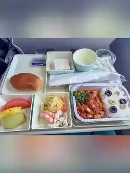 For the in-flight meal, I chose beef (stewed in tomato). The seasoning was not too strong, which suits Japanese tastes🍽️