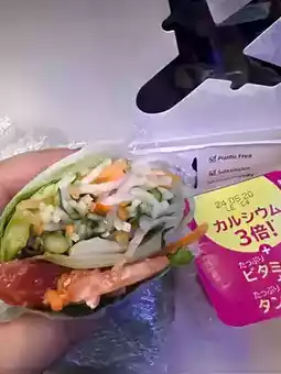 I flew to Hawaii on ANA's Flying Honu during the second half of Golden Week. I booked when ANA was having a sale, so a premium economy ticket from Itami via Narita was about 150,000 yen. Premium economy can use the lounge, so when I arrived at Narita, I had a leisurely beer in the ANA lounge while watching the FLYING HONU I was about to board, and finally had some soba noodles. The Flying Honu is a two-story plane, and first, business, and premium economy seats are on the second floor, and the first floor seats are all economy. Premium economy seats are arranged 2:3:2. Since it was the second half of Golden Week, it was quite empty. Slippers, blankets, headphones, and a pouch were prepared on the seat, and the pouch contained a toothbrush, earplugs, and an eco bag. There was a storage space in the window seat, which was very convenient. I reserved a gluten-free menu for the in-flight meal in advance on the website. Personally, I was very satisfied! It was especially great that they gave me a wrap salad to eat before I arrived. I didn't want a dry muffin lol.