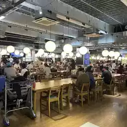 In the food court, there are a wide selection of okonomiyaki, sushi, udon, Matsuya, and more.