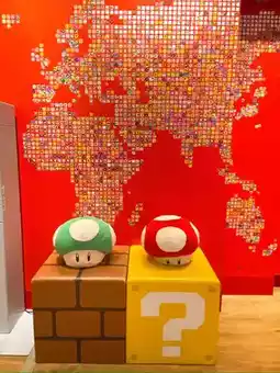 There are displays of Mario and Luigi dolls, and a gachapon machine, which is fun🎶