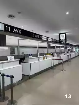 15 "Security Inspection Area" After checking in at the airline counter and dropping off your luggage, you will be checked here for dangerous items using baggage inspection and body scanners.
