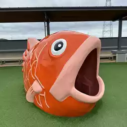 On the rooftop, there are cute objects in the shape of sweet potatoes, sea bream, and vegetables that children can play with.