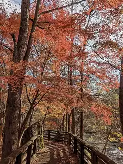 🍁 Nasu Highlands is not only the most popular autumn foliage spot in Tochigi Prefecture but also one of the most beloved destinations in the Kanto region. Visitors can ride a cable car 🚡 to enjoy the scenic views while moving slowly through the landscape, cross suspension bridges, and venture deeper into the vibrant foliage. The combination of gentle white smoke rising from the mountains and the sea of red leaves creates a picturesque scene perfect for photography.