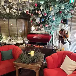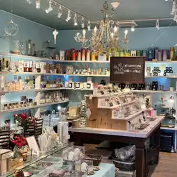 The first floor is filled with candles, and the second floor is packed with Christmas goods.